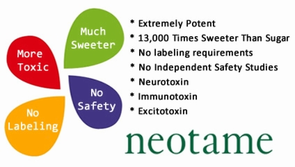 When it comes to human health, neotame is in the same dangerous category as aspartame, but it is a deadlier neurotoxin, immunotoxin and excitotoxin. The long-term effects are essentially cell-death.
