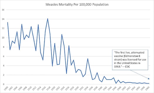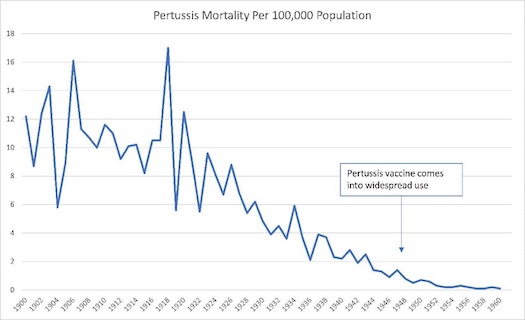 Another myth constantly reinforced by the medical cartel is that its therapeutic measures were responsible for the dramatic decline in mortality observed during the twentieth century. Most specifically, we are supposed to believe that vaccines were the cause of dramatic reductions in infectious disease mortality, but it is a simple fact of the historical data that these reductions mostly occurred before there were even any vaccines to possibly help explain it.
