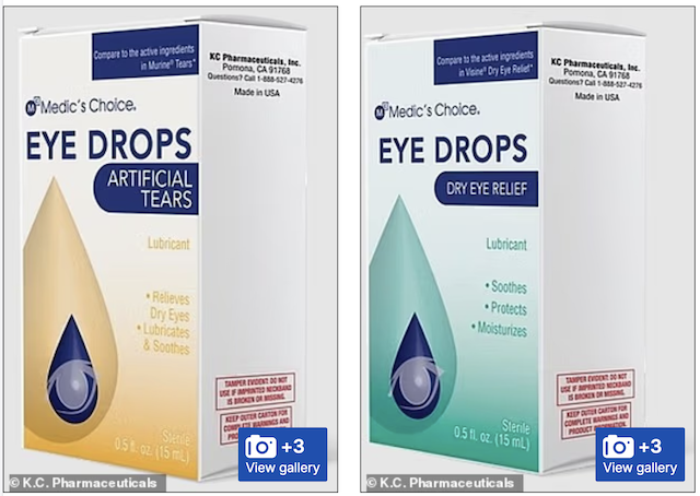 Pictured above are two of the over-the-counter generic eye drops sold by K.C. Pharmaceuticals that have been recalled